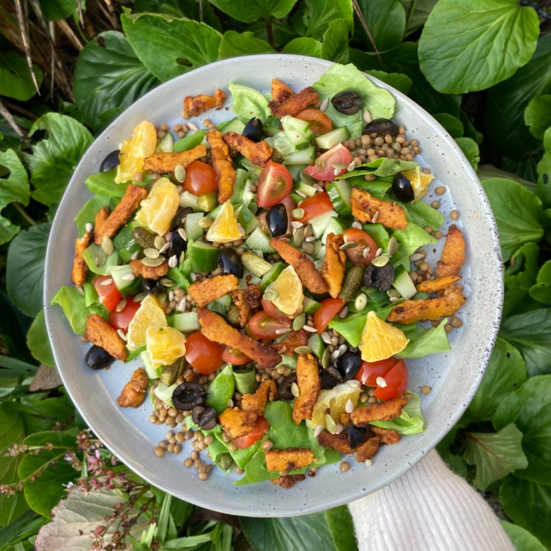Deze zomerse salade is heerlijk te maken als avondeten op een warme dag of als bijgerecht naast een BBQ. De salade bevat linzen als eiwitbron en de smaak van sinasappel en munt maakt deze heerlijk fris! De ingrediënten zijn allemaal makkelijk verkrijgbaar en dat maakt ook dat deze salade binnen 10 minuten op tafel staat.